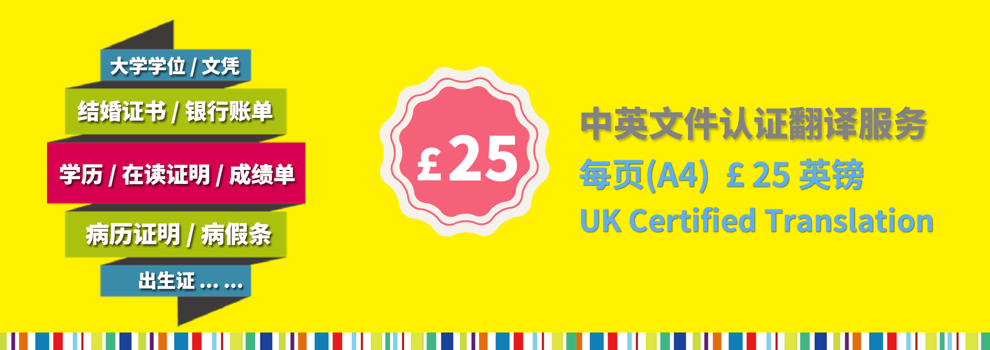 | 大学学位、文凭、学历证明,病历证明,专业证书,在读证明,成绩单,银行账单,专利,结婚证书/离婚证,出生证明,法律文件,护照,各类英国签证材料。 (翻译合同等文字较多的内容需要单独确定价格,通常为50英镑/页。) | 25英镑/A4页面, 字体大小12。 |